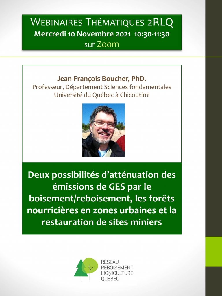 Webinaires thématiques 2RLQ – 10 novembre 2021 à 10h30 : Atténuation des émissions de GES par le boisement/reboisement.
