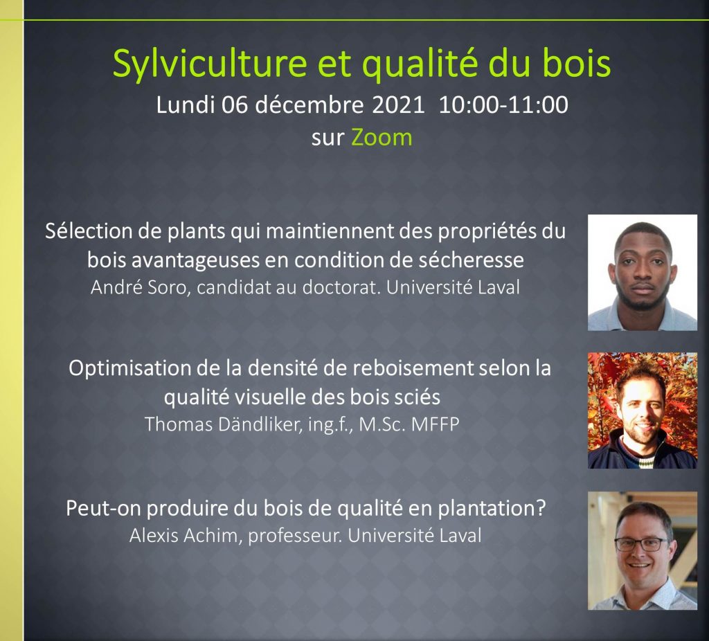 Le webinaire du mois de décembre sera consacré au thème de la sylviculture et la qualité du bois avec trois présentations au menu :