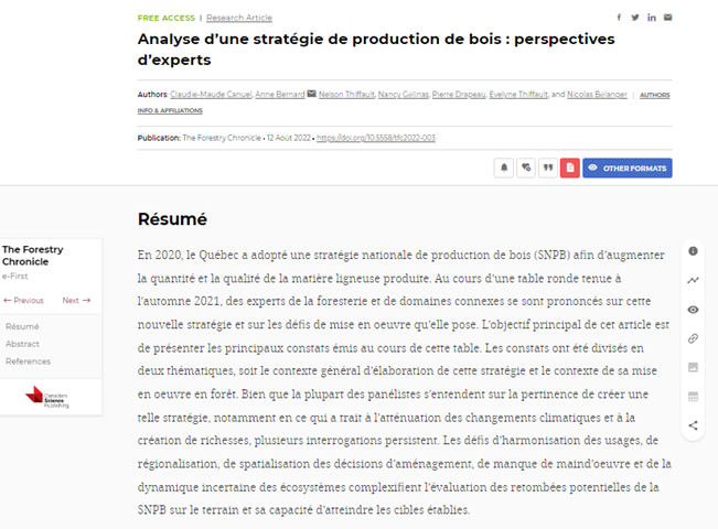 Article sur la stratégie nationale de production de bois du Québec